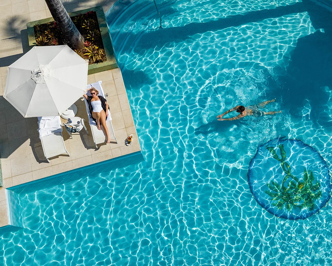 Tanken Sie Sonne und erfrischen Sie sich mit einem Drink direkt im Pool. Mit Blick auf den Strand ist unsere Swim-up-Bar der beliebte Treffpunkt für alle, die ihren Cocktail lieber im Wasser als an Land genießen.