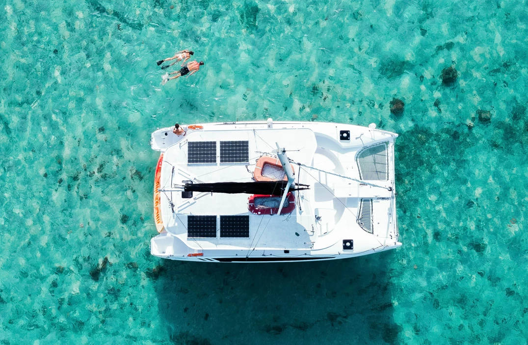 Erleben Sie die magische Karibik bei Sonnenuntergang an Bord eines Katamarans – inklusive Rum Punch und der Möglichkeit, direkt vom Boot ins Meer zu springen. Die Tour startet täglich um 15:15 Uhr (Boarding ab 15:00 Uhr), außer sonntags und donnerstags – direkt vom Strand aus.