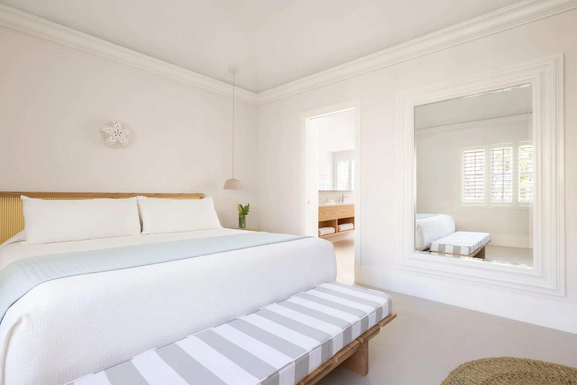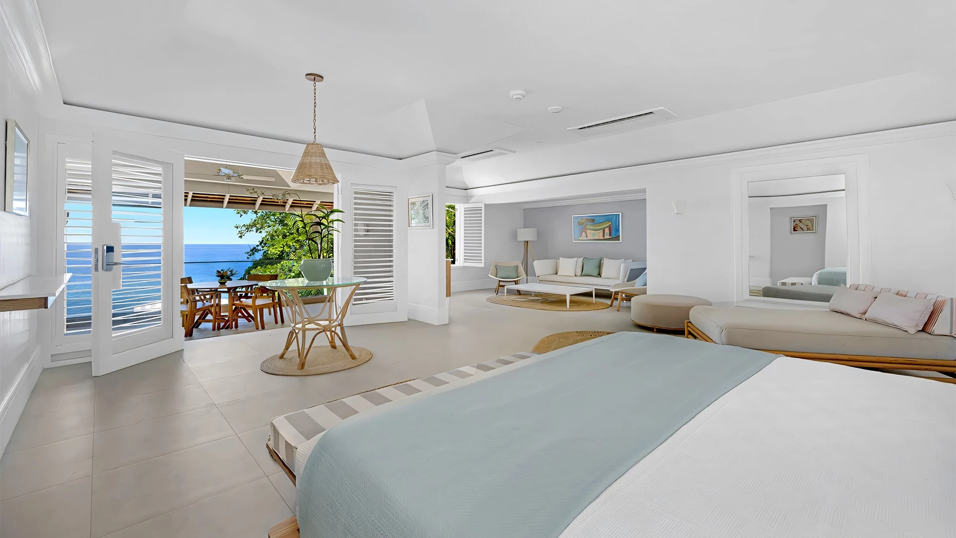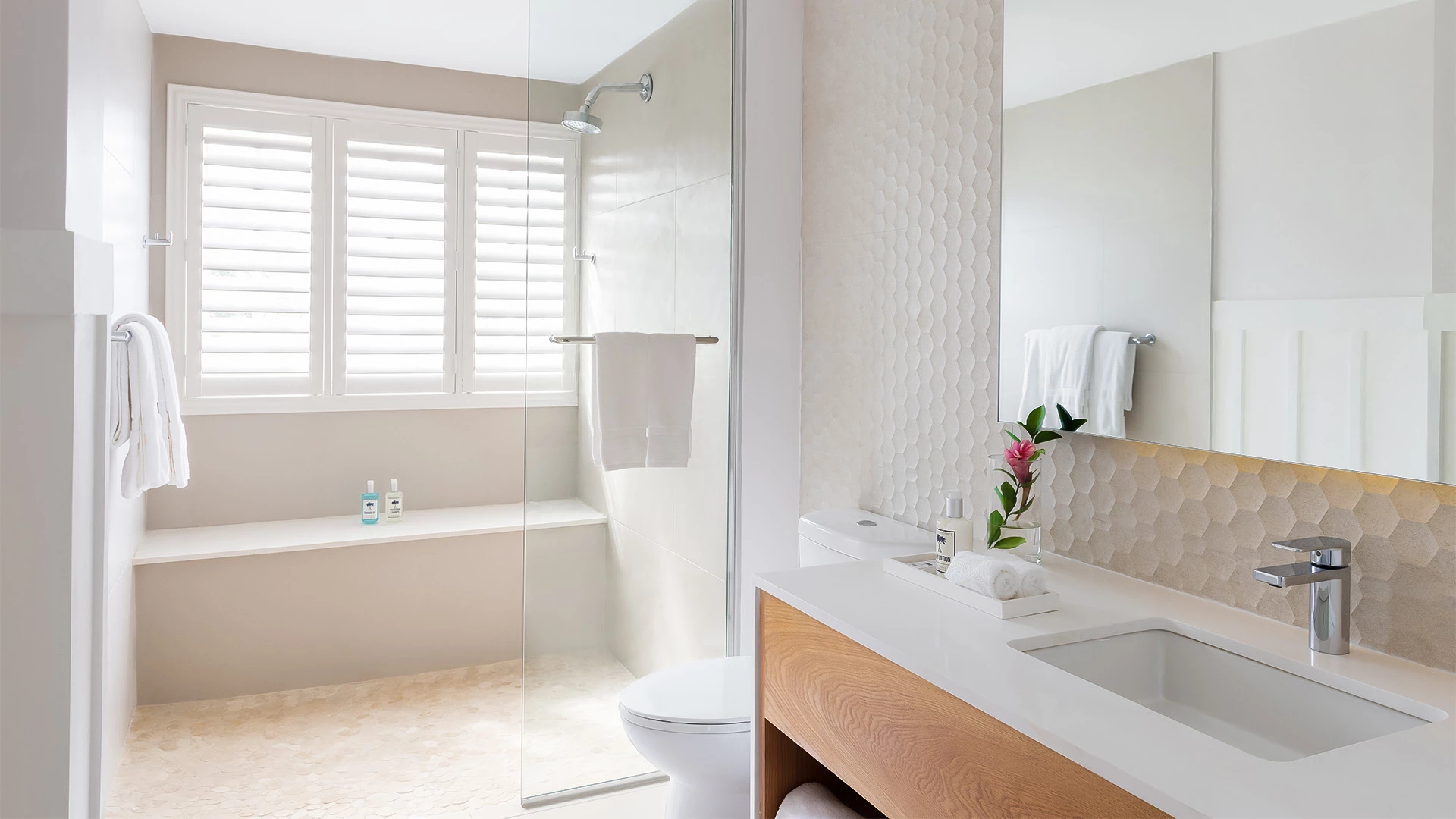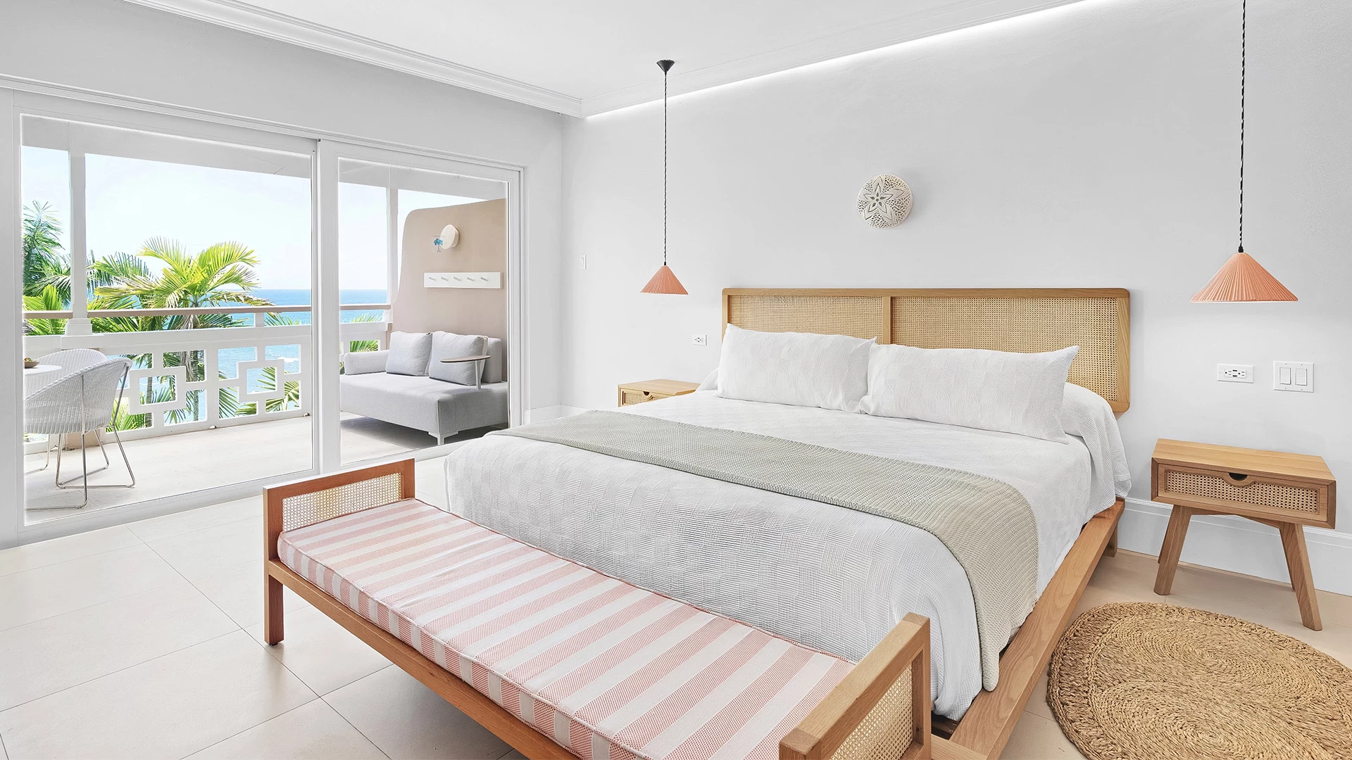 Tür auf, Tropen an. Zwischen Blätterschimmer und Vogelstimmen wirken diese Suiten wie ein privater Gartenpavillon. Sanfte Pastelltöne, helle Hölzer und geflochtene Details schaffen sofort dieses „Hier bleiben“-Gefühl. Große Schiebetüren öffnen sich zu privaten Balkonen mit echtem Regenwaldgefühl. Begehbare Duschen, mit elegantem italienischem Porzellan gefliest, setzten einen edlen Akzent. Lage: Gebäude C, D, E und G.