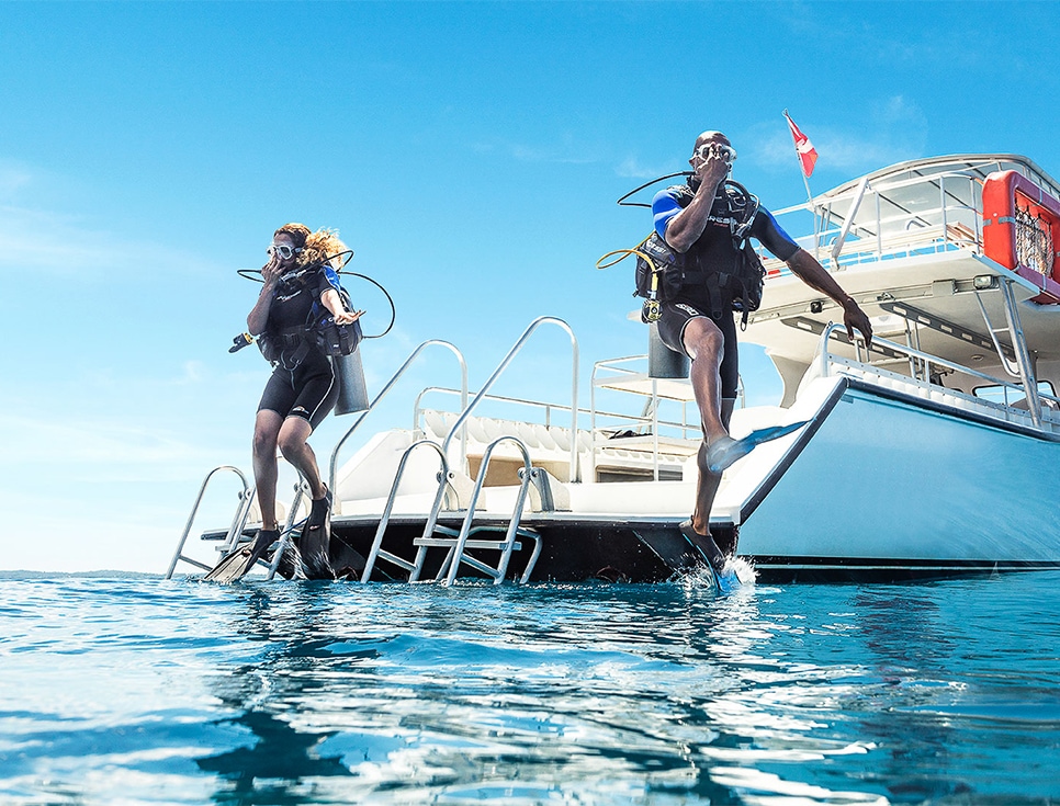 Tauchen Sie ein in eine faszinierende Unterwasserwelt mit unserem Scuba-Diving-Programm – ob erfahren oder Einsteiger. Angeboten werden Tages- und Nachttauchgänge.